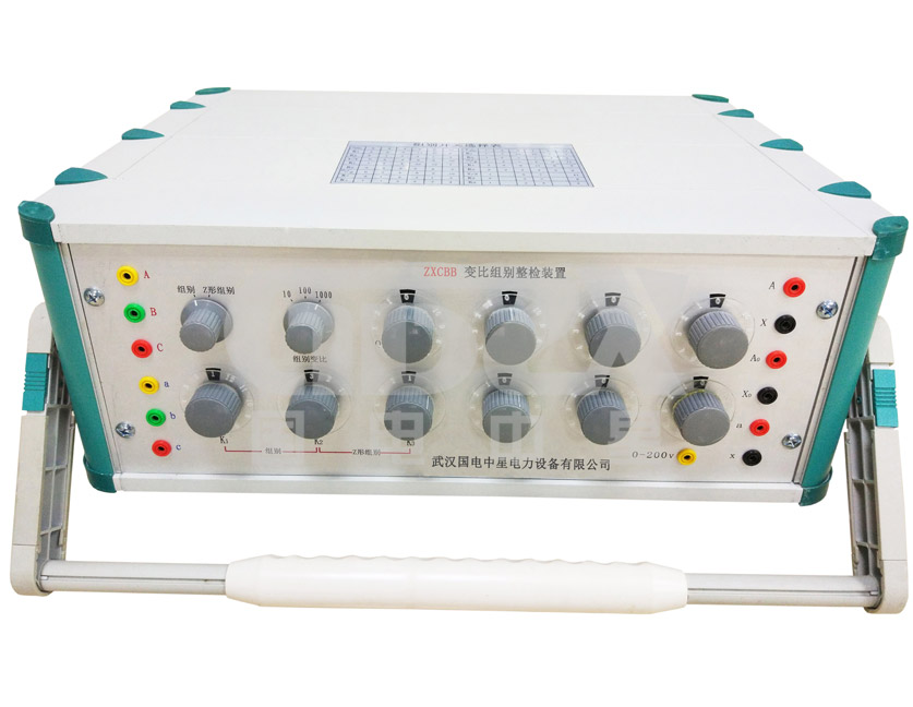 ZXCBB變壓器變比整檢裝置是用來檢定0.05級及以下變壓器變比測試儀的變比精度、分辨率和組別(包括Z形組別)的正確性一種裝置。本裝置分為兩個部分:標準三相PT和七盤感應分壓器。標準三相PT用來檢定變比組別測試儀的組別測試功能,包括Z形組別,同時有三種電壓比選擇;七盤感應分壓器用來檢定變比組別測試儀的變比精度和分辨率,也可以單獨作為感應分壓器使用。