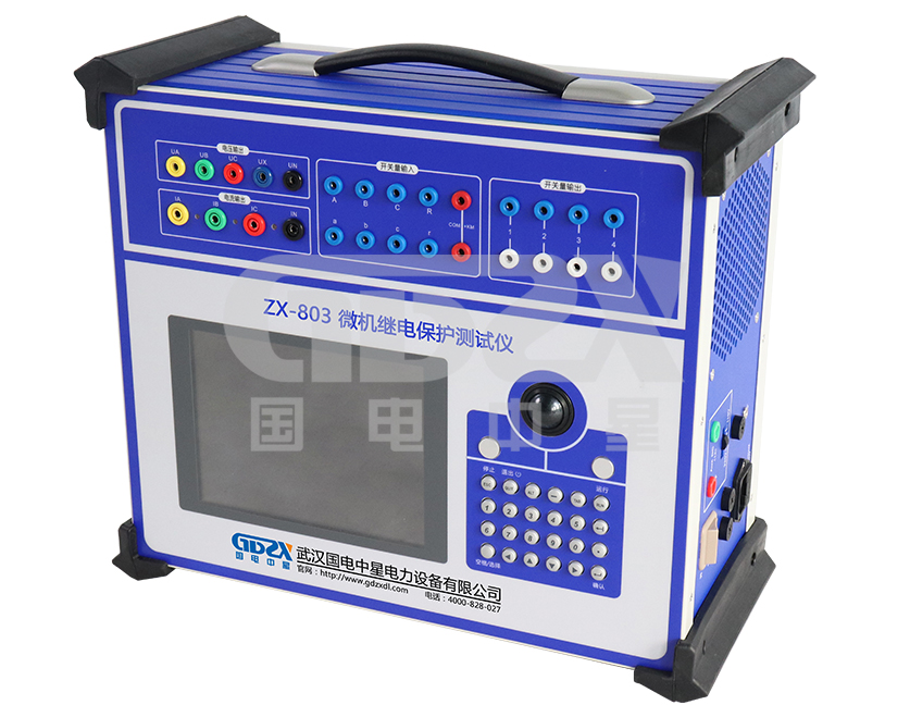 ZX-803三相繼電保護測試儀可對各種繼電器(如電流、電壓、反時限、功率方向、阻抗、差動、低周、同期、頻率、直流、中間、時間等)及微機保護進行檢定,并可模擬各種復雜的瞬時性和轉換性等故障進行整組試驗。