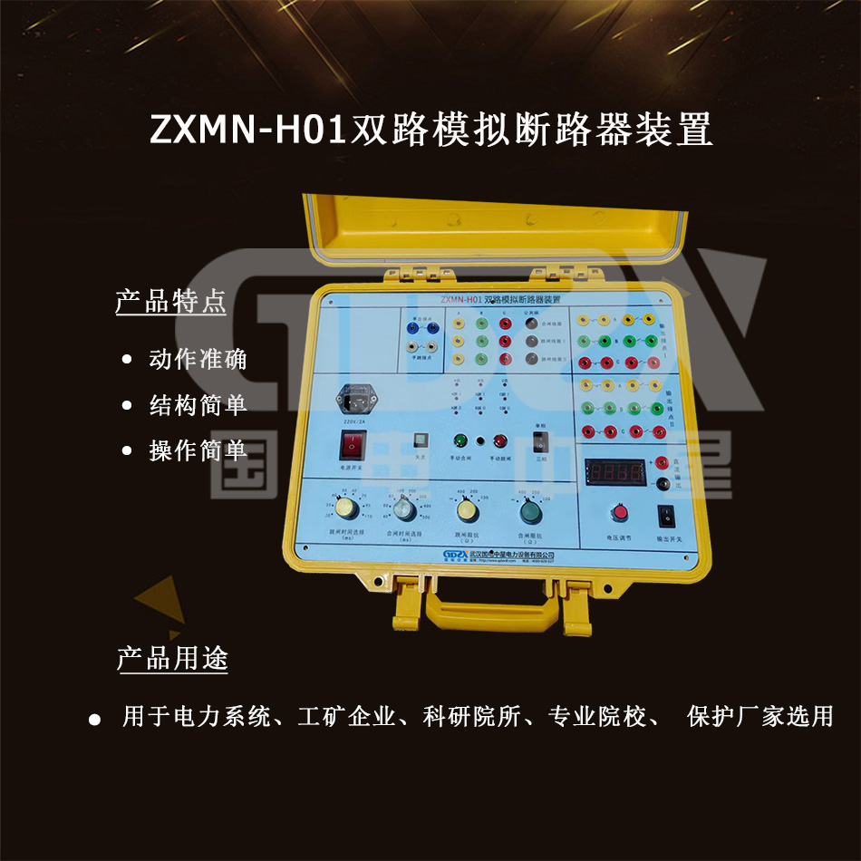 ZXMN-H01 模擬斷路器采用大規模現場可編程門陣列、帶保護的 功率電子器件等原理制造,跳閘線圈按獨立的雙回路設計,可以模擬 6-500KV 電壓等級的三相及分相操作、單跳閘線圈或雙跳閘線圈斷路 器的動作行為,適用于電力系統、工礦企業、科研院所、專業院校、 保護廠家選用,作為繼電保護及自動裝置帶開關整組系統傳動試驗時 實際斷路器的替代設備,動作準確、可靠、動作次數不受限制,可以 大大提高試驗的正確性與完整性,最大限度地降低實際斷路器的動作 次數,提高使用壽命,是繼電保護試驗工作的重要配套設備。