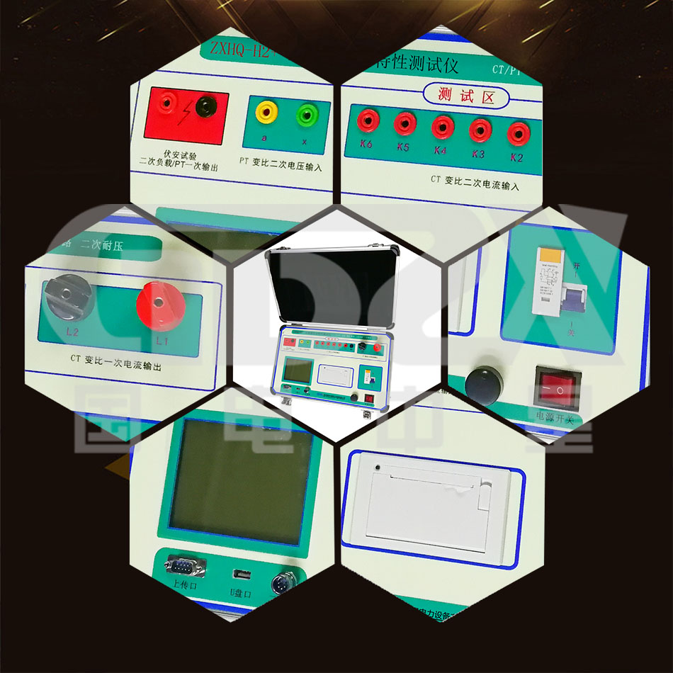 2) 可測(cè)試CT/PT的:“伏安特性”,“5%、10%和15%誤差曲線”,“變比、極性”,“二次直阻”及“二次負(fù)載”,“二次回路”,“二次耐壓”和退磁功能。