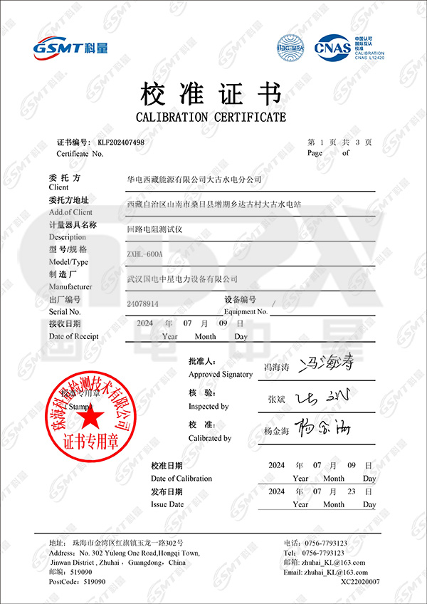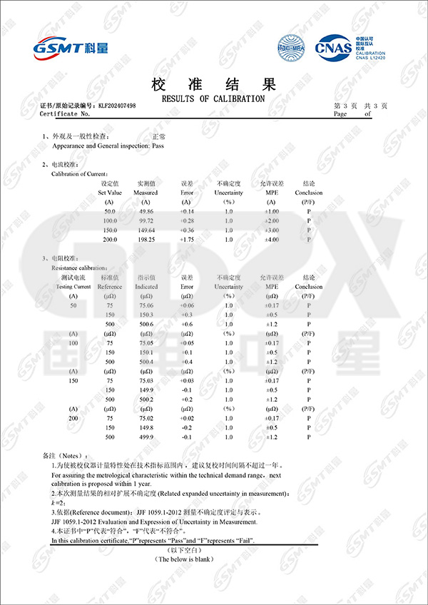● 采用國家標準推薦直流600A直接測得回路電阻。