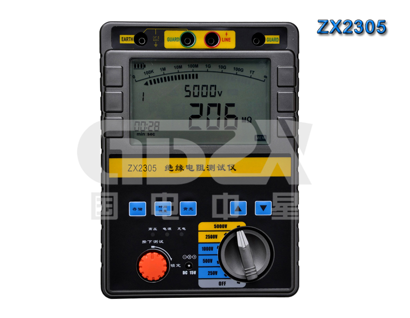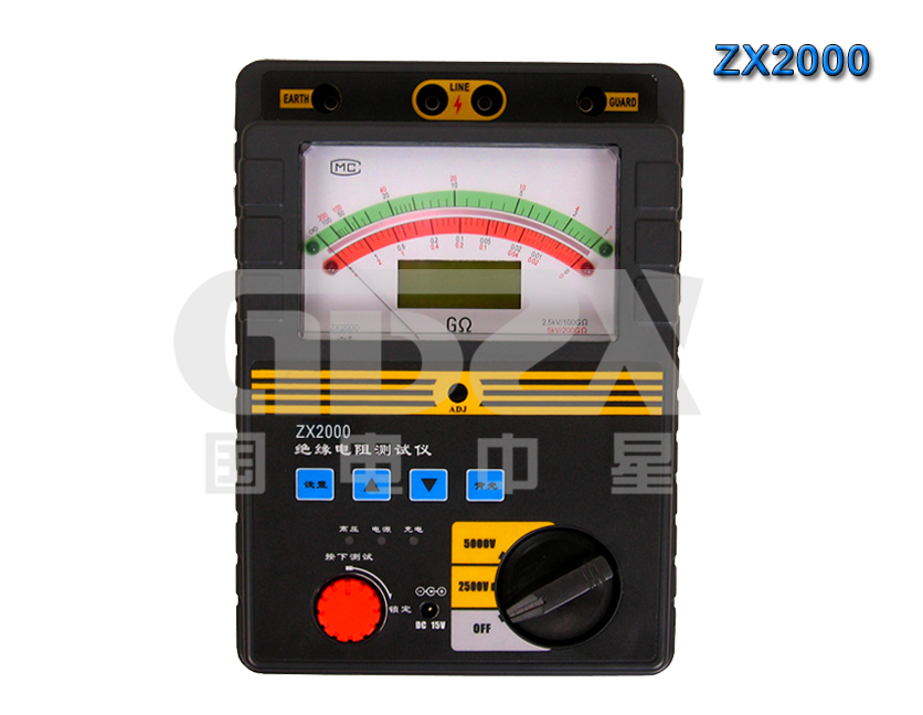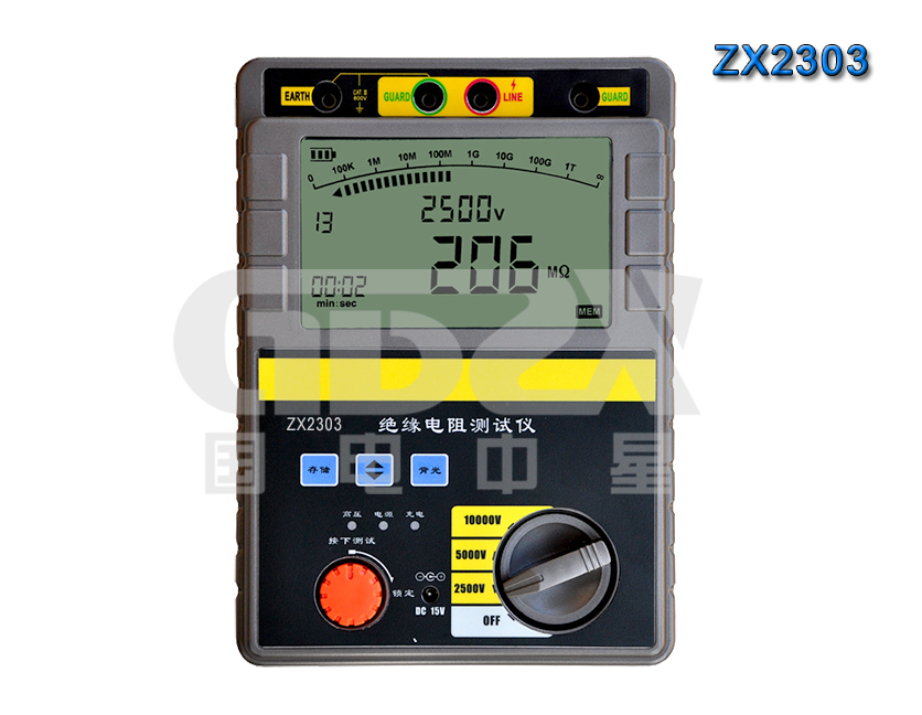 ZX2系列高壓絕緣電阻測試儀采用嵌入式工業單片機實時操作系統,超薄形張絲表頭與圖形點陣液晶顯示器完美結合,該系列表具有多種電壓輸出等級(500V、1000V、2500V、5000V、10000V)容量大、抗干擾強、指針與數字同步顯示、交直流兩用、操作簡單、自動計算各種絕緣指標吸收比、極化指數、各種測量結果具有防掉電功能等特點。是測量大容量變壓器、互感器、發電機、高壓電動機、電力電容、電力電纜、避雷器等絕緣電阻的理想測試儀。