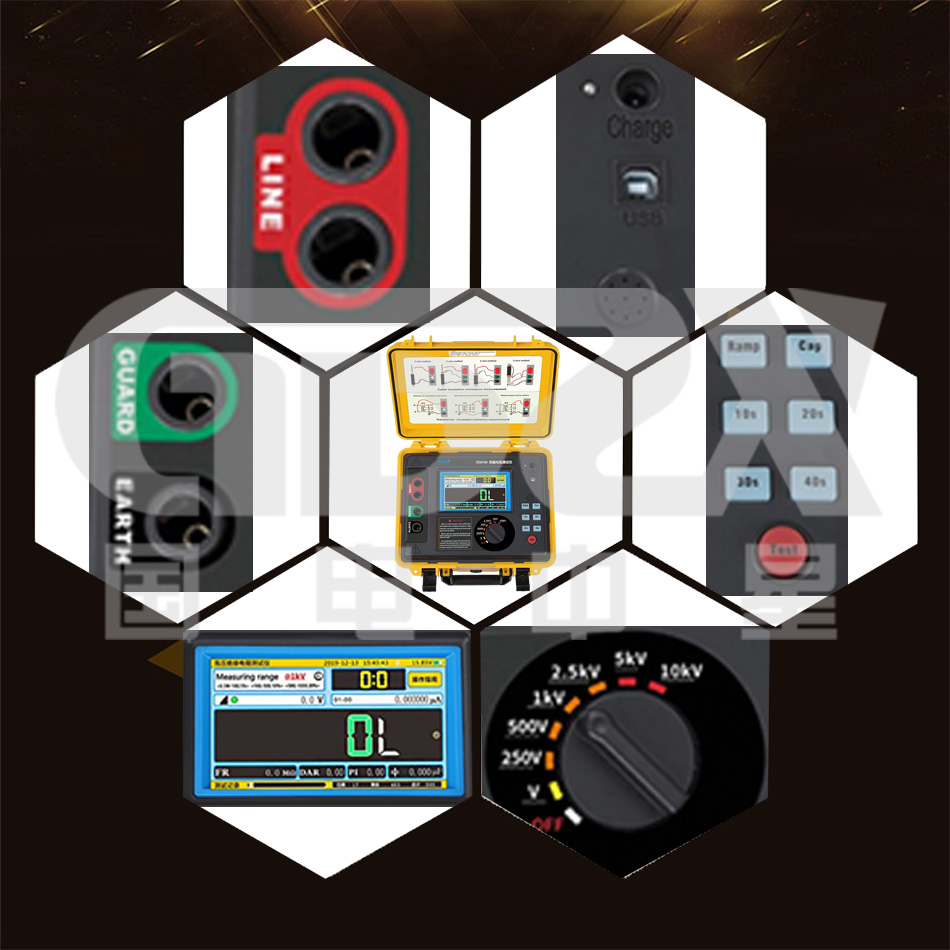 儀表自動存儲含有日期時間的測試結果,觸摸屏可以非常方便的查閱記錄的歷史數據,完全隔離的USB接口可將測試數據安全的上傳到PC機。儀表配置帶有雙層絕緣及屏蔽層的測試線,高壓棒配有可更換的鱷魚夾及鉤子,可適應各種測試場所。儀表采用堅固的雙層外殼結構,儀表外箱防護等級IP65,能防止運輸存儲過程中水分灰塵的侵入及防止撞擊有效保護儀表。適用于電纜、電機、發電機、變壓器、互感器、高壓開關、避雷器等設備的絕緣電阻測試(IR);極化指數測試(PI);吸收比測試(DAR);斜坡測試(RAMP);濾波測試(FR)。電壓測試(V);電流測試(nA)。