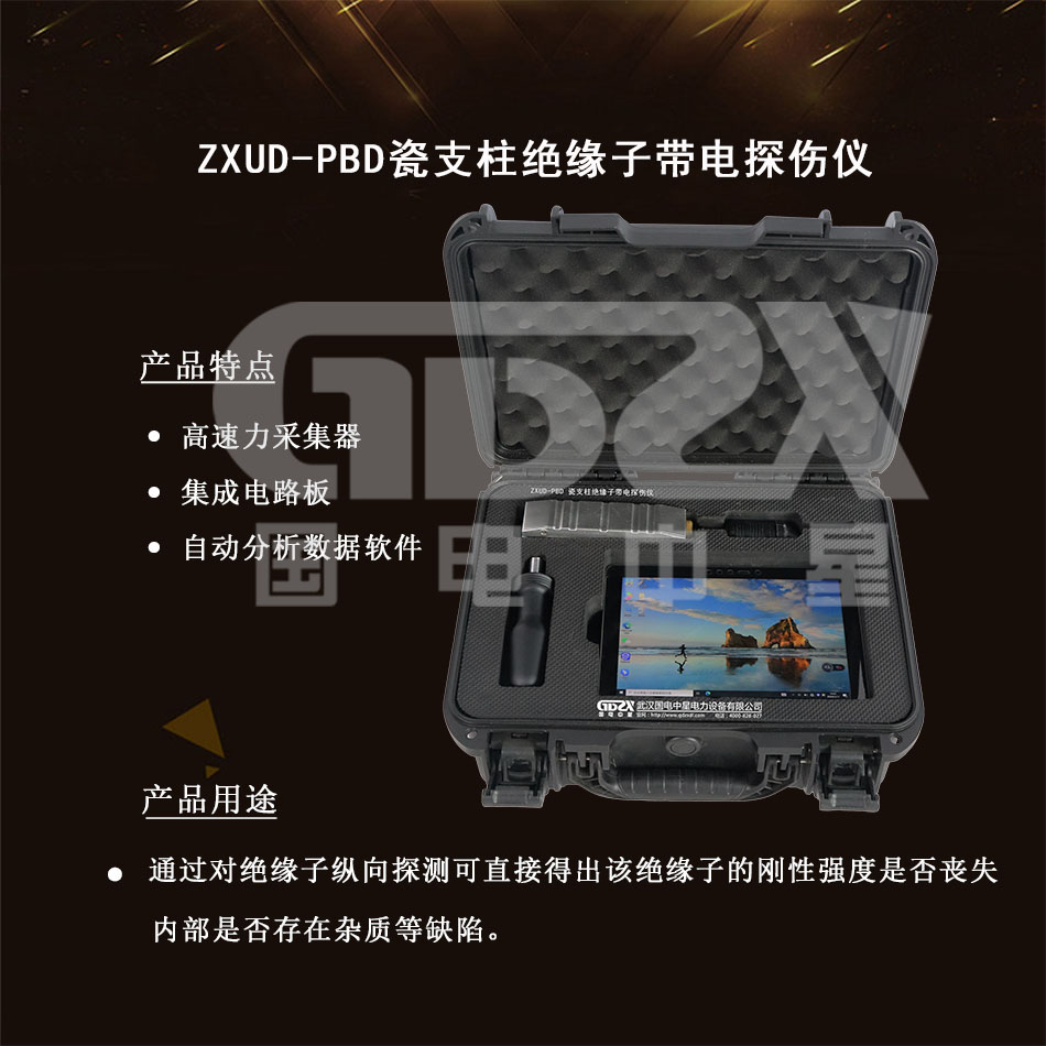 ZXUD-PBD瓷支柱絕緣子帶電探傷儀通過對絕緣子縱向探測可直接得出該絕緣子的剛性強度是否喪失、內部是否存在雜質等缺陷。本設備可帶電探傷,20秒左右即可完成一套瓷支柱絕緣子探傷,極大縮短檢測時間,對預防瓷支柱絕緣子故障提供參考。